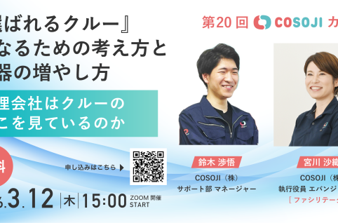 COSOJIでは、管理業界の最新知見や事例を共有するオンラインイベント「COSOJIカフェ」を定期開催しています。このたび、第17回 COSOJIカフェ・年末特別企画として、管理業界の第一線で活躍する...