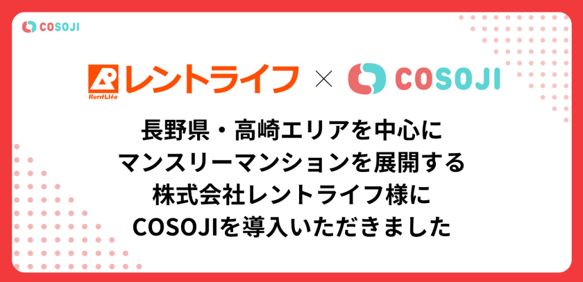 株式会社レントライフ(本社:長野県長野市栗田2007、代表取締役会長:浅川 透)は、COSOJI株式会社(本社:東京都千代田区、代表取締役:富治林 希宇)の提供する『不動産管理DXサービス:COSOJI』を活用し、マンスリーマンション清掃業務の効率化と品質向上を目的とした新たな運用を開始しました。